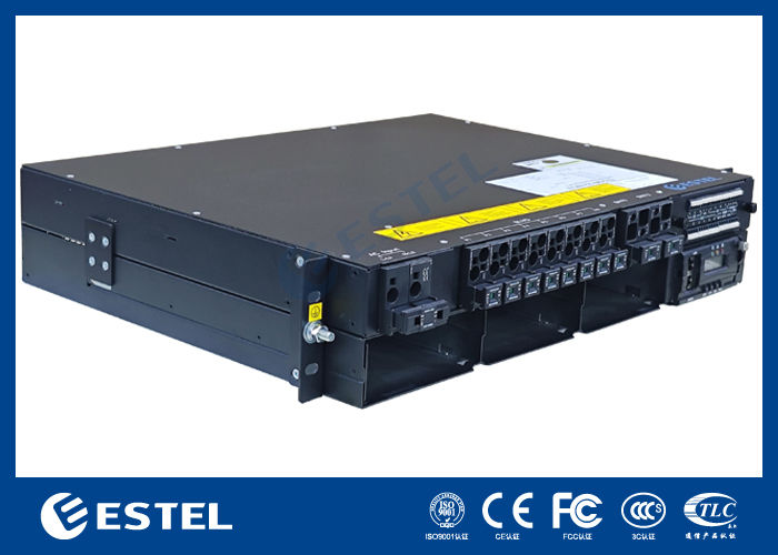 L'alimentation sous rack 2U, hauteur compacte de 2U pour répondre aux besoins critiques d'applications de transmission de fibres et de micro-ondes, dispositif d'accès, commutateur.avec MCBs CA/batterie/chargeLes câbles sont reliés à l'avant par MCB et busbar.